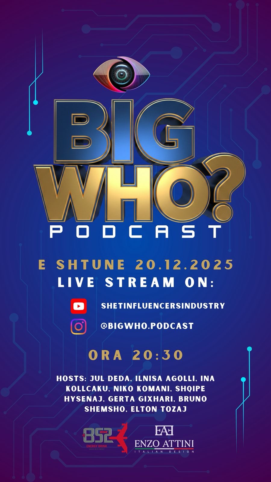 Me mbështetjen e BS7 Energy Drink dhe Enzo Attini – Italian Design, “Big Who?” synon të kthehet në pikëtakimin kryesor online për fansat e Big Brother VIP Albania.
